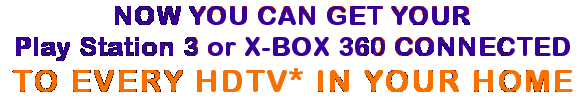 | Introducing Our Brand New Installation exclusively offered by ihangTVs.com With our new technology we now can connect your Play Station 3 or X-Box gaming console to every television* in your home using only one gaming console...No longer will you have to relocate your X-Box or PS3 to go play it on another TV! Get Zone Free Gaming Now!! What are the benefits you ask?